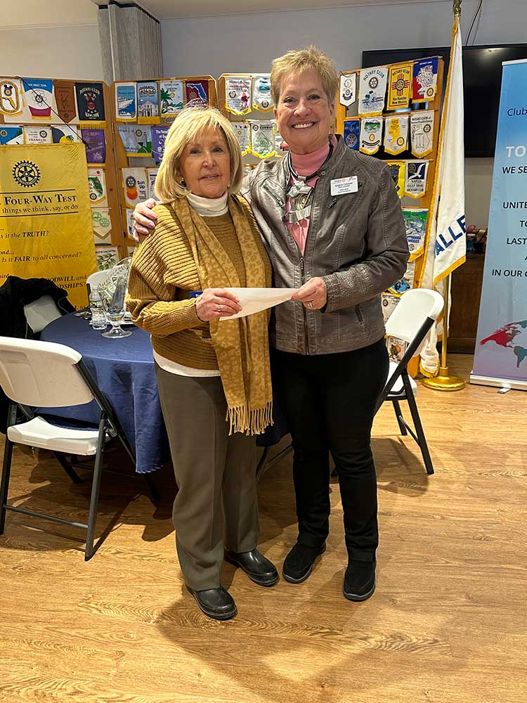 Cashiers Rotary President Karen Sullivan presented a grant check for $3,000 fo Cathy Maddock, President of Friends of the Cashiers Library, at a recent meeting.